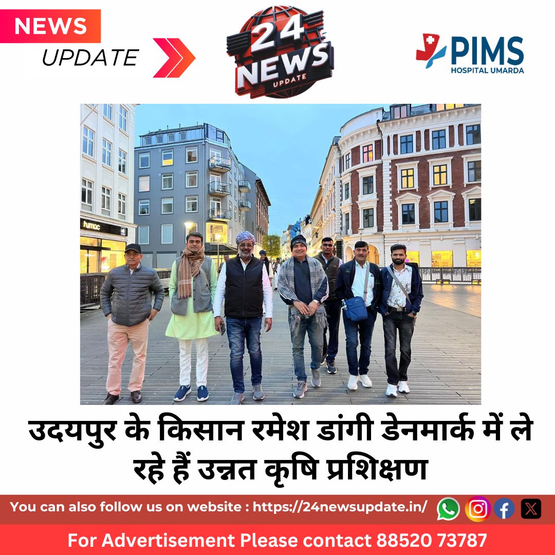 24 News Update उदयपुर. जिले के वल्लभनगर तहसील के मोरजाई निवासी किसान रमेश डांगी वर्तमान में डेनमार्क में कृषि प्रशिक्षण ले रहे हैं। यह प्रशिक्षण राजस्थान सरकार के नॉलेज एनहांसमेंट प्रोग्राम के तहत आयोजित किया गया है, जिसका उद्देश्य प्रगतिशील किसानों की क्षमता बढ़ाना और नई तकनीकों से किसानों को अवगत कराना है।