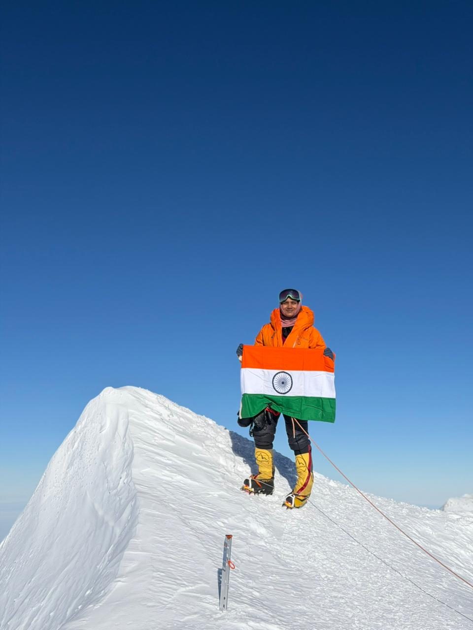 24 News Update उदयपुर। अंटार्कटिका महाद्वीप के सबसे ऊंचे पर्वत शिखर ’’विन्सन मैसिफ पर भारतीय ध्वज फहराकर ’’मनस्वी अग्रवाल’’ ने उदयपुर ही नहीं राजस्थान का नाम अंतरराष्ट्रीय मंच पर गौरवान्वित कर दिया है। मनस्वी ने 12 दिसम्बर 2025’’ को यह ऐतिहासिक उपलब्धि हासिल की और वे इस दुर्गम शिखर पर पहुंचने वाली महिला पहली राजस्थानी महिला बन गई हैं। इस दुर्गम शिखर को आज तक राजस्थान का कोई पुरुष भी नहीं छु पाया है।