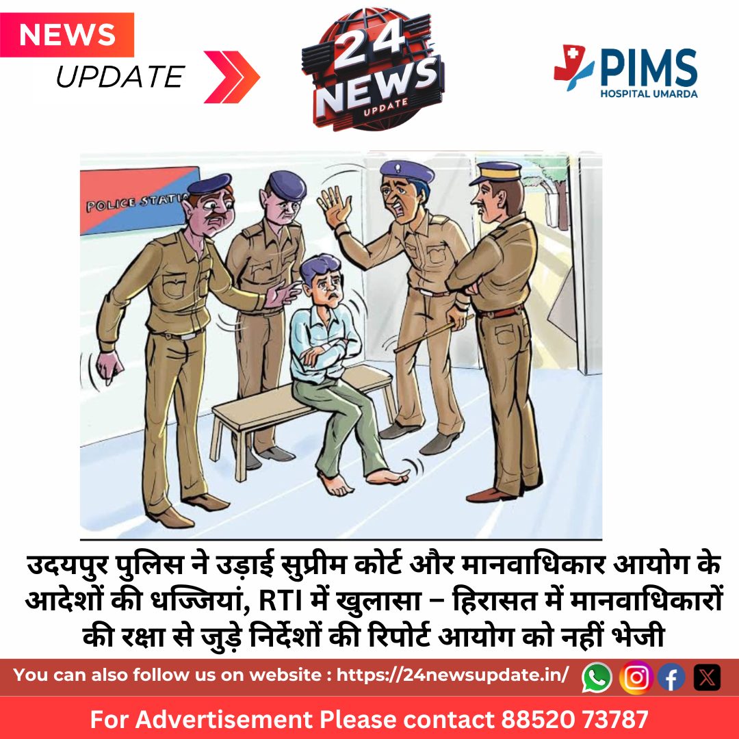 24 news Update उदयपुर। मानवाधिकारों की सुरक्षा को लेकर सुप्रीम कोर्ट और राज्य मानवाधिकार आयोग के स्पष्ट निर्देशों के बावजूद उदयपुर पुलिस ने आदेशों की गंभीर अनदेखी की है। सूचना के अधिकार (RTI) से सामने आया है कि दिसंबर 2024 और जनवरी 2025 तक राज्य मानवाधिकार आयोग को सुप्रीम कोर्ट के आदेशों की अनुपालन रिपोर्ट उदयपुर पुलिस की ओर से प्राप्त ही नहीं हुई।