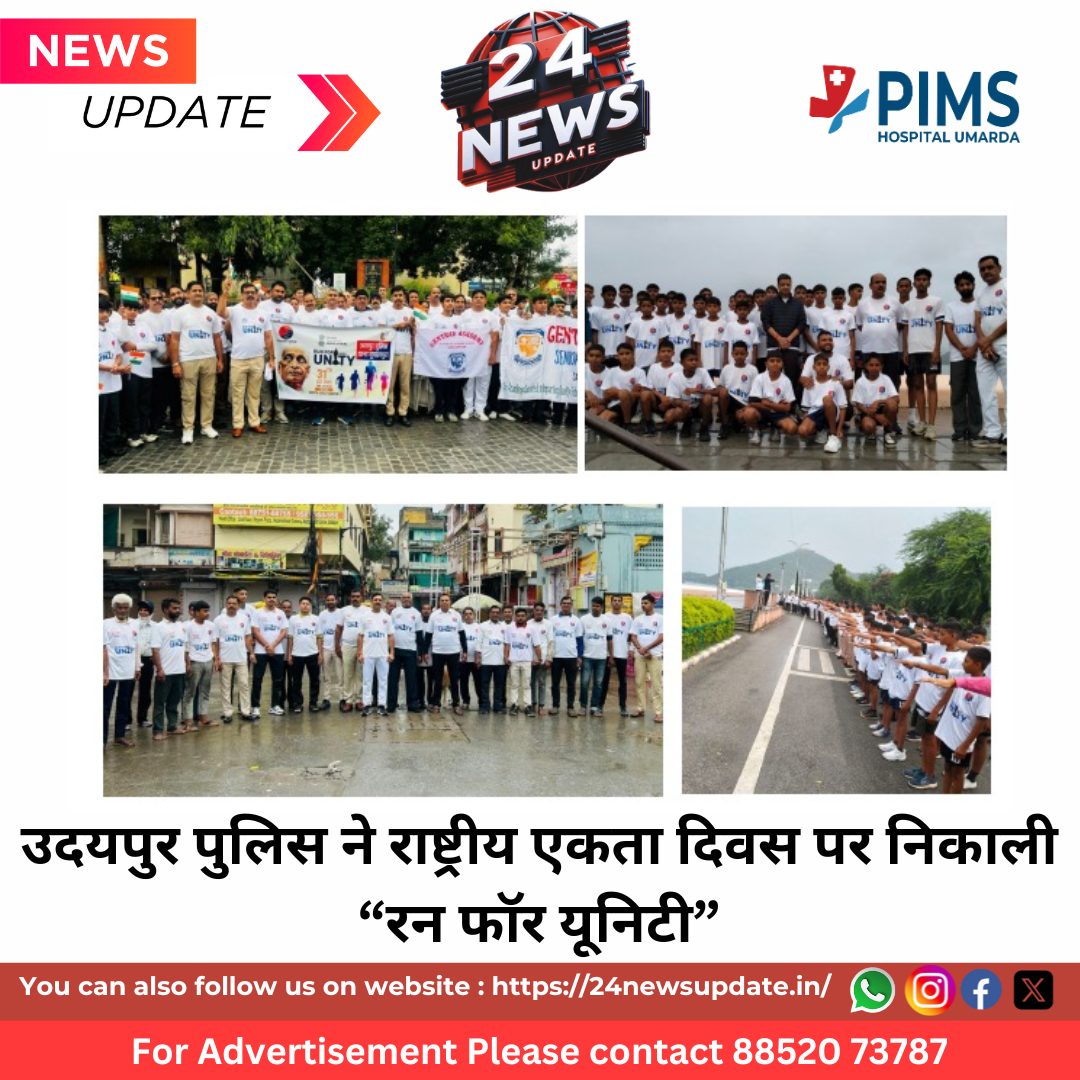 24 News Update उदयपुर। लौह पुरुष भारत रत्न सरदार वल्लभभाई पटेल की जयंती के अवसर पर राष्ट्रीय एकता दिवस पूरे उत्साह के साथ मनाया गया। इस अवसर पर उदयपुर पुलिस द्वारा जिलेभर में “रन फॉर यूनिटी” का आयोजन किया गया।