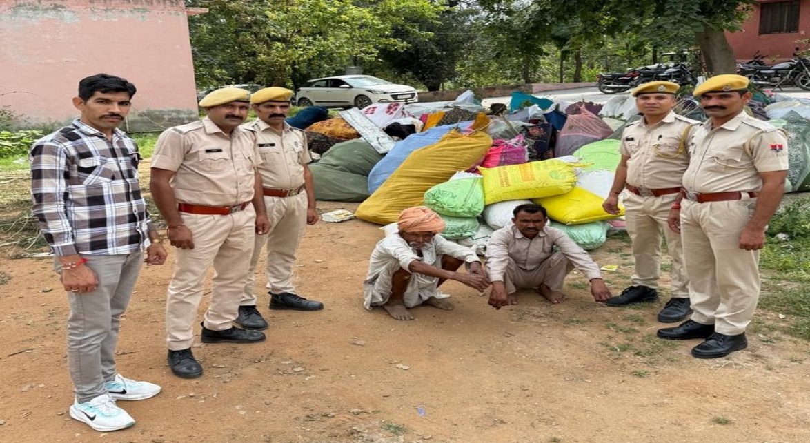 थाना कानोडः- जिला पुलिस अधीक्षक, उदयपुर श्री योगेश गोयल द्वारा चलाये जा रहे अवैध मादक पदार्थो की तस्करी के धरपकड अभियान के तहत श्रीमती अंजना सुखवाल अतिरिक्त पुलिस अधीक्षक, खैरवाडा एवं श्री राजेन्द्र जैन वृताधिकारी वृत वल्लभनगर के सुपरविजन में श्री मुकेश चन्द्र उ.नि. थानाधिकारी पुलिस थाना कानोड मय टीम ने कार्यवाही करते हुये कल दिनांक 11.08.2025 को थाना सर्कल विरया गांव में पहाडी क्षेत्रो की आड व नदी दरिया के पेटे क्षेत्रो में दबिश दी। जहां पर एक खेत जिसमे गांजे की फसल बोई हुई पाई। गांजे की फसल हरी भरी होकर लह-लहरा रही थी तथा गांजे के पौधो पर फुल, पत्ते, बीज आये हुए थे। खेत में स्थित कच्चे घर की तलाश की ली गयी घर के अन्दर 15 प्लास्टिक के कटटो में सुखा गांजा के फुल, पत्ते, बीज भरे हुए मिले तथा घर पर दो व्यक्ति मिले जो पुलिस जाप्ता को देखकर भागने की कोशिश करने लगे जिनको पुलिस जाप्ता द्वारा घेरा देकर पकडा गया तथा नाम पता पुछा तो अपना नाम केशा पिता श्री धन्ना मीणा उम्र 75 साल निवासी लकु का लेवा पुलिस थाना लसाडिया जिला सलुम्बर हाल निवासी विरया पुलिस थाना कानोड जिला उदयपुर व दुसरे ने अपना नाम रामसिह उर्फ रामा मीणा पिता श्री केशा उर्फ केशु मीणा उम्र 48 साल निवासी मालो को ओडा लसाडिया पुलिस थाना लसाडिया जिला सलुम्बर डाल निवासी विरिया पुलिस थाना कानोड जिला उदयपुर होना बताया।