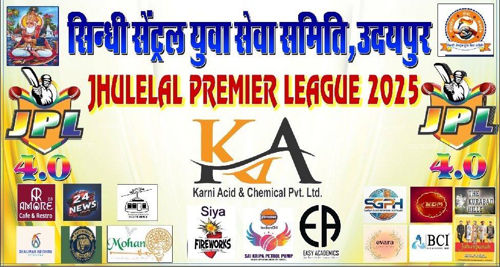 24 News Update उदयपुर। सिन्धी सेन्ट्रल युवा सेवा समिति के तत्वावधान में आयोजित होने वाली बहुप्रतीक्षित झुलेलाल प्रीमियर लीग-4 (JPL-4) का आयोजन 24 से 27 दिसंबर तक शिकारवाड़ी खेल मैदान में रात्रिकालीन क्रिकेट मुकाबलों के रूप में किया जाएगा। चार दिवसीय इस क्रिकेट महाकुंभ को लेकर सिन्धी समाज के साथ-साथ शहरभर के खेलप्रेमियों में जबरदस्त उत्साह देखने को मिल रहा है।