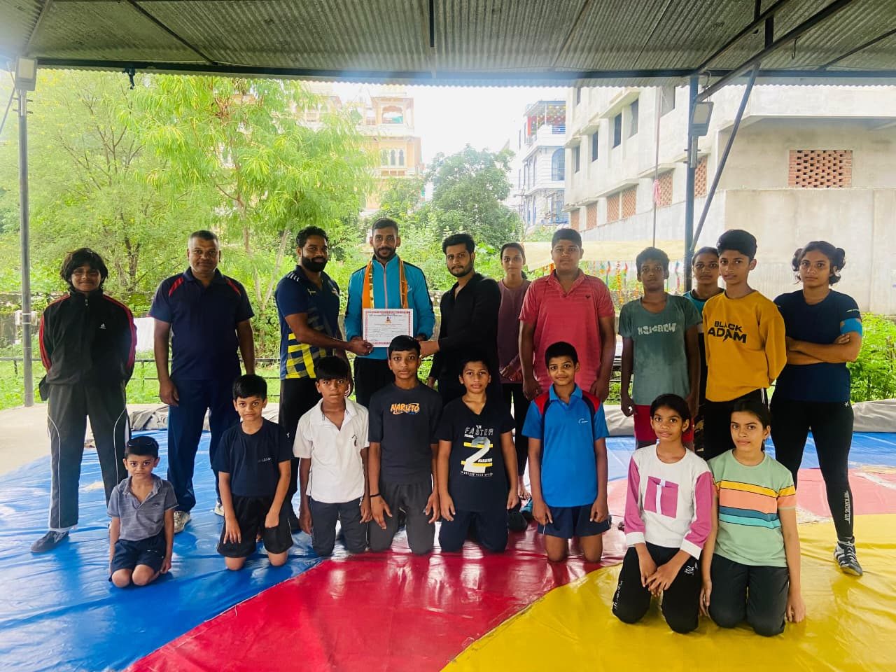 24 News Update उदयपुर। श्री चतुर्भुज हनुमान राष्ट्रीय व्यायामशाला के पहलवान राकेश सिसोदिया ने अपनी खेल यात्रा में एक और उपलब्धि हासिल की है। उन्होंने नेताजी सुभाष राष्ट्रीय क्रीड़ा संस्थान (पटियाला, पंजाब) से छह सप्ताह का कुश्ती कोच सर्टिफिकेट कोर्स सफलता पूर्वक पूरा किया। इस उपलब्धि पर व्यायामशाला परिवार ने उनका उत्साहवर्धन किया। व्यायामशाला संचालक कृष सेन, कुश्ती कोच हेमंत अठवाल, लोकेश कुमावत और सुरेंद्र सिंह चौहान ने राकेश सिसोदिया का मेवाड़ी पाग और उपर्णा पहनाकर सम्मान किया।राकेश सिसोदिया ने इस उपलब्धि को व्यायामशाला के संस्थापक स्व. उस्ताद ओम प्रकाश सेन को समर्पित करते हुए उनका आशीर्वाद लिया। Share this: Share on X (Opens in new window) X Share on Facebook (Opens in new window) Facebook More Email a link to a friend (Opens in new window) Email Share on WhatsApp (Opens in new window) WhatsApp Like this:Like Loading... Related Discover more from 24 News Update Subscribe to get the latest posts sent to your email. Type your email… Subscribe Post navigation उदयपुर में ACB की बड़ी कार्रवाई: निजी व्यक्ति रिश्वतखोरी में पकड़ा गया, ASP की भूमिका जांच के घेरे में यूको बैंक द्वारा वित्तीय समावेशन अभियान के तहत उदयपुर में शिविर का आयोजन
