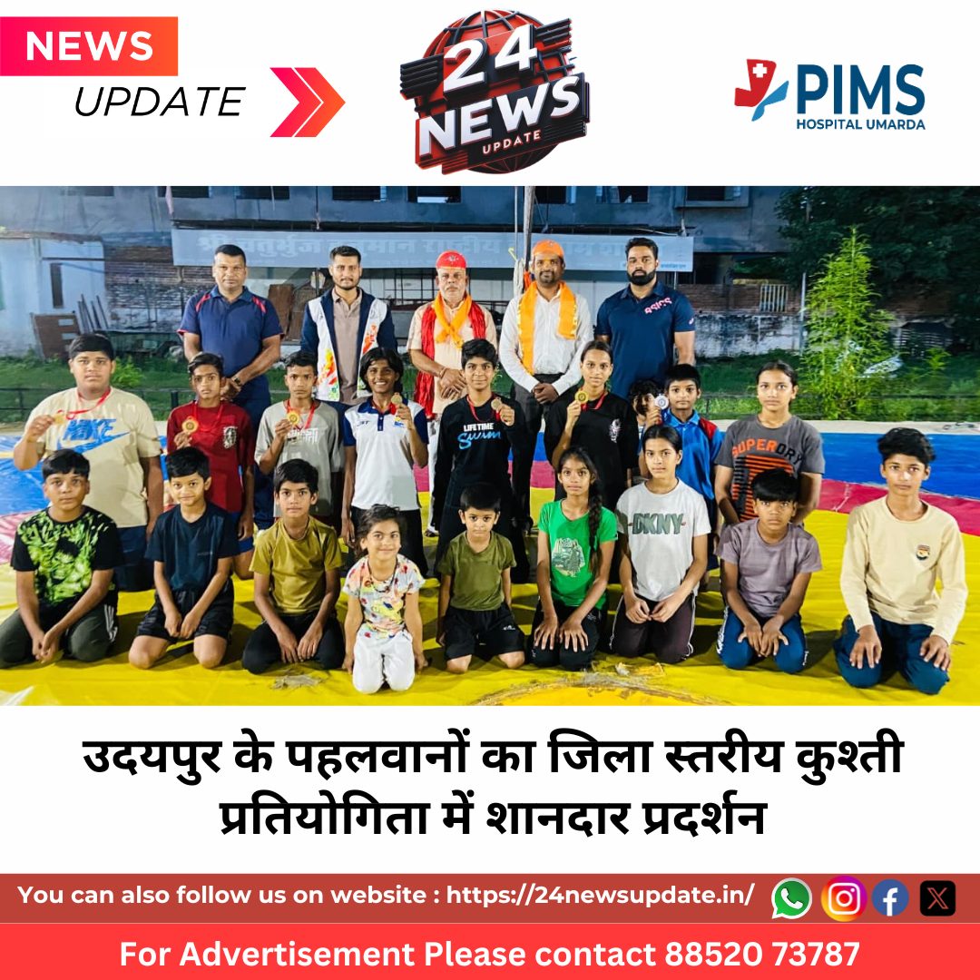 24 News Update उदयपुर। 69वीं जिला स्तरीय विद्यालयी कुश्ती प्रतियोगिता में श्री चतुर्भुज हनुमान राष्ट्रीय व्यायामशाला के पहलवानों ने दमदार प्रदर्शन करते हुए कई पदक अपने नाम किए। प्रतियोगिता में विजेता बने पहलवान अब राज्य स्तरीय प्रतियोगिताओं में जिले का प्रतिनिधित्व करेंगे।