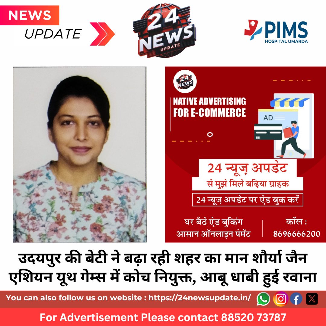 24 news Update उदयपुर. बहरीन में दिनांक 22 से 31 अक्टूबर को आयोजित तीसरे एशियन यूथ गेम्स में उदयपुर की बेटी शौर्या जैन को भारत की ओर से भाग लेने वाली कैमल राइडिंग टीम का कोच नियुक्त किया गया है।