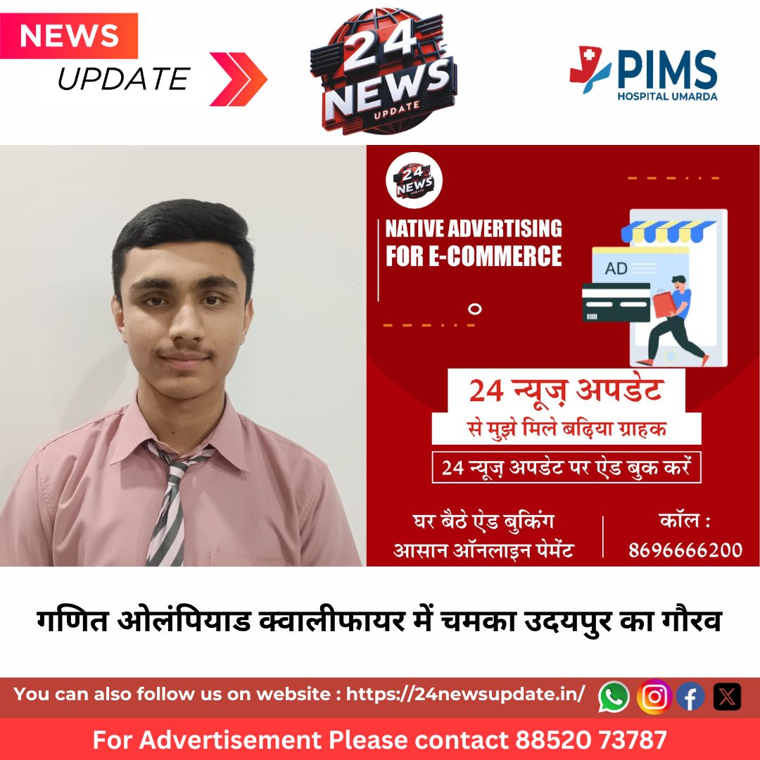24 News Update उदयपुर। सेंट एंथोनी सीनियर सेकेंडरी स्कूल, उदयपुर के कक्षा 10 के प्रतिभाशाली विद्यार्थी गौरांग शाह ने भारतीय गणित ओलंपियाड क्वालीफायर (Indian Olympiad Qualifier in Mathematics) में उत्कृष्ट सफलता प्राप्त कर न केवल विद्यालय बल्कि उदयपुर और पूरे राजस्थान का नाम रोशन किया है। अब गौरांग इस प्रतिष्ठित परीक्षा के अगले चरण क्षेत्रीय गणित ओलंपियाड (Regional Mathematics Olympiad – RMO) स्टेज 2 में भाग लेंगे। यह उपलब्धि पूरे प्रदेश के लिए गर्व का विषय मानी जा रही है।