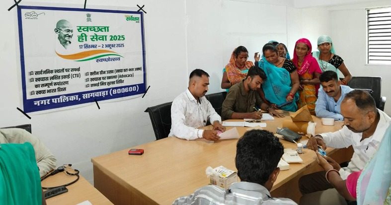 24 News Update सागवाड़ा (जयदीप जोशी)। नगर पालिका द्वारा 29 सितम्बर को शहरी सेवा शिविर आयोजित हुआ। शहरी सेवा शिविर का आयोजन पालिका परिसर में आयोजित किया गया शहरी सेवा शिविर-2025 में श्रीमती धर्मीष्ठा मीणा महिला पर्यवेक्षक महिला एवं बाल विकास विभाग सागवाडा प्रथम की सुपरवाईजर द्वारा बच्चो को अनिर्वाय शिक्षा संबंधी जानकारी उपलब्ध कराते हुए सुश्री वैष्णवी डबगर पुत्री प्रकाश डबगर निवासी सागवाडा को शहरी सेवा शिविर-2025 में पानी की बोतल, कलर, बुके देकर आंगनवाडी में प्रवेश करवाया गया। इस अवसर पर अधिशाषी अधिकारी मोहम्मद सुहैल शेख, शिविर प्रभारी जितेन्द्र शर्मा सहित आंगनवाडी कार्मिक एवं पालिका कर्मचारी उपस्थित रहे। अधिशासी अधिकारी एव न.पा.अध्यक्ष आशीष गाँधी ने आम जन से अपील की हे की शहरी सेवा शिविर में अधिक से अधिक संख्या में उपस्थित होकर राज्य सरकार एव केंद्र सरकार की योजनाओ का लाभ प्राप्त करने का आव्हान किया।