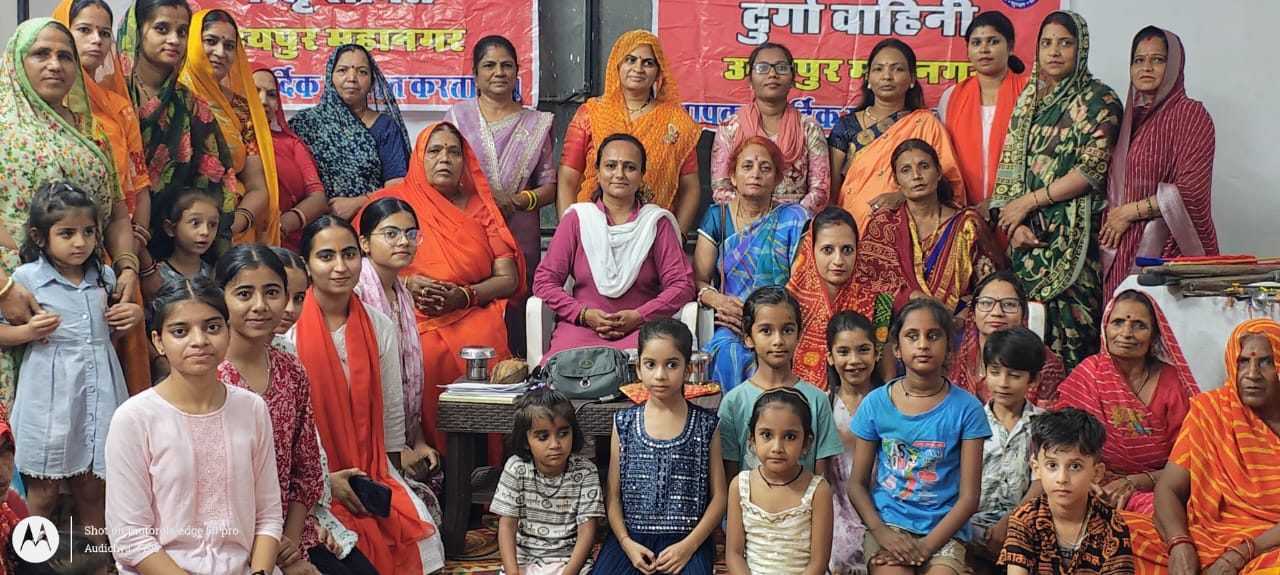 इस अवसर पर दुर्गा वाहिनी क्षेत्रीय संयोजिका योगना दीदी जोशी, प्रांत मातृशक्ति संयोजिका लता दीदी, विभाग संयोजिका विजय लक्ष्मी दीदी, गीता मानावत, प्रीति मानावत, और नगर संयोजिका सुषमा जी सहित प्रखंड के पदाधिकारी एवं कार्यकर्ताओं ने शस्त्रों का पूजन कर राष्ट्र, धर्म और समाज की रक्षा हेतु संकल्प लिया।