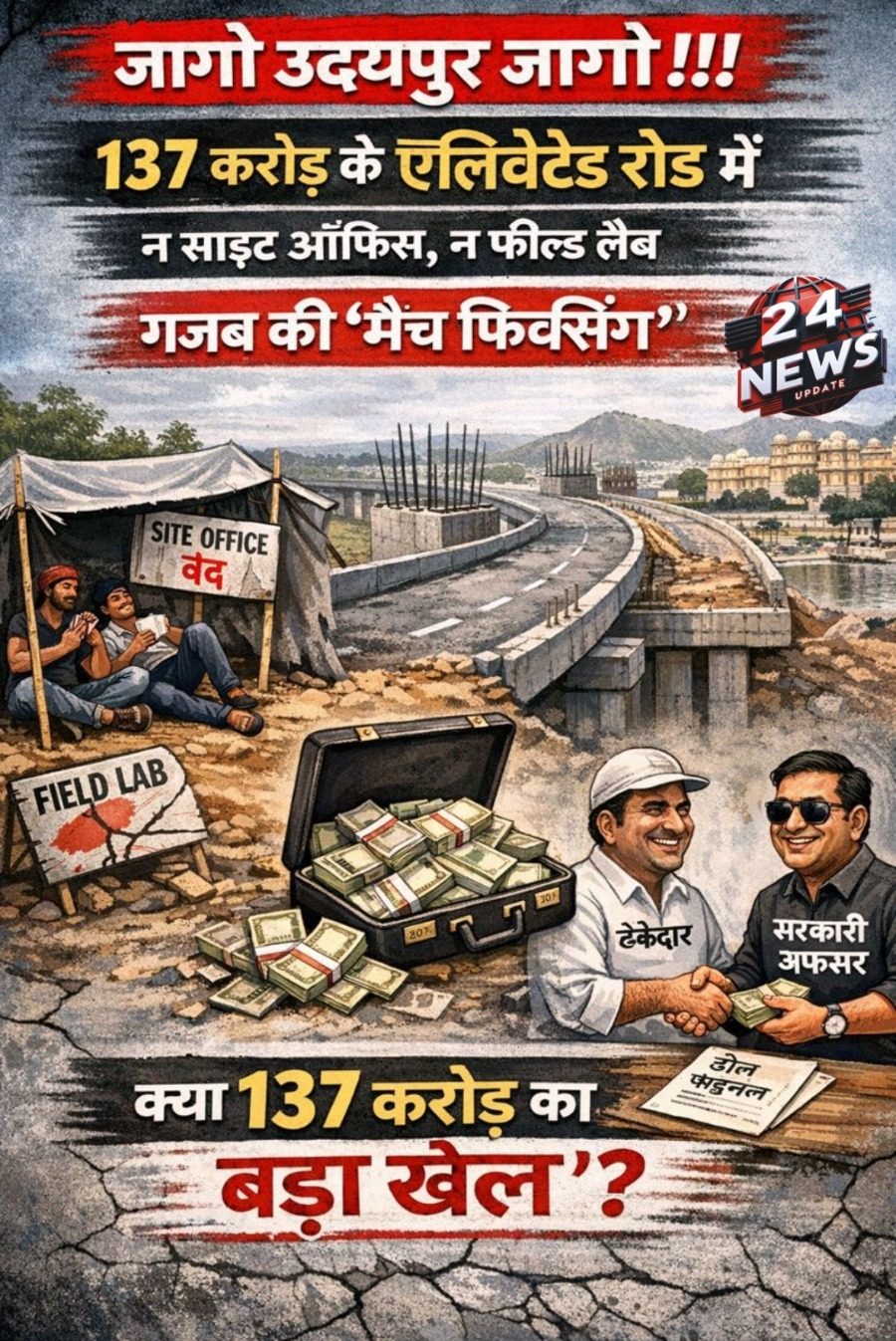 रिपोर्ट— जयवंत भैरविया24 News Update उदयपुर। लेकसिटी में जनता के टेक्स के पैसों से बन रहे 137 करोड़ रुपये की लागत के एलिवेटेड में नगर निगम और ठेका लेने वाली कंपनी के बीच तगड़ी मैच फिक्सिंग हो गई लगती है। ठेकेदार मनमर्जी से इसे बनाए जा रहा है और निगम टेण्डर शर्तों की पालना नहीं करने पर भी आंख मूंद कर बैठी हुई है। ये सब वैसा ही है जैसे कि आपने कोई महाभोज रखा और उसमें पता चला कि इवेंट मैनेजर की हलवाई से फिक्सिंग हो गई। क्या पकवान बनाने हैं, कौनसे काउंटर लगाने हैं….से लेकर तंदूरी दाल में काउंटर तक का फैसला खुद ही किए जा रहा है। आप पूछ रहे हैं कि भैया, मिठाई टेस्ट तो करवा दो कैसी बन रही है, मगर इवेंट वाला आपको जवाब ही नहीं दे रहा है। याने पइसा आपकी जेब का खरच हो रहा है और मजे इवेंट वाला और हलवाई ले रहा है।अब तो आप समझ ही गए होंगे कि यही सब हमारे उदयपुर के एलिवेटेड रोड याने कि एलिवेटेड फलाई ओवर के निर्माण में हो रहा है। पैसा जनता का है मगर जनता केवल टुकुर—टुकुर देख रही है कि आज यहां पिलर खड़ा हुआ, कल वहां। आज यहां खोद दिया, कल वहां। मगर उसको यह जानने का हक ही नहीं दिया गया है कि उस जनता का इवेंट मैनेजर याने की नगर निगम उसी का टेक्स का पइसा लेकर हलवाई याने कि एलिवेटेड के ठेकेदार के साथ क्या गुल खिला रहा है। खबर यहां तक पढ़ते—पढ़ते आपके मन में भी जिज्ञासा जागी होगी कि इस सार्वजनिक कमठाणे में चल रहे काम में सीमेंट कितनी, कौनसे ग्रेड की लगी है, सरिया कौनसे मानकों का है। ठेकेदार कि किए कराए की जांच कौनसी लेब में हो रही है। मगर यह सब पूछने पर आपको निगम जवाब ही नहीं दे रहा है। याने लोकतंत्र में मेरी ही बिल्ली, मुझ ही से म्याऊ करती नजर आ रही है। आरटीआई के तहत बार—बार पूछने पर भी निगम यह नहीं बता रहा है कि एलिवेटेड रोड के टेण्डर की लिखित शर्तों के अनुसार काम हो रहा है या नहीं?? टेण्डर में बताई गई टेस्टिंग लेब कहीं पर है भी या नहीं?? या फिर जनता क्या उखाड़ लेगी…वाली बात सोच कर पर्दे के पीछे कुछ और ही खेल चल रहे हैं। सच कहें तो ऐसे जीमण को लूटने वाले हलवाई को बर्दाश्त तो नहीं किया जा सकता। एलिवेटेड रोड के निर्माण के दौरान जमीन पर हालाता विकट हैं। एलिवेटेड रोड के ठेकेदार ने टेंडर एग्रीमेंट पर दस्तखत किए, पर शर्तें मान कौन रहा है? और हमारे एलिवेटेड के निर्माता—निर्देशक भी हाथ पर हाथ धरे बैठे हैं। ऐसा लग रहा है उनको कुछ पड़ी ही नहीं हैं??? याने कि जिन पर निगरानी की जिम्मेदारी हमने सौंपी थी, वे खुद ही किसी और को जिम्मेदारी सौंपकर मस्त हो गए। सार्वजनिक धन की चौकीदारी भी उनसे नहीं हो रही है।साइट आफिस हो गया हवा—हवाईजानकार इंजीनियरों की नजर में प्रोजेक्ट में तकनीकी खामियां साफ़ दिखती हैं, मगर निगरानी का ढांचा ही अधूरा और चरमराया हुआ है
