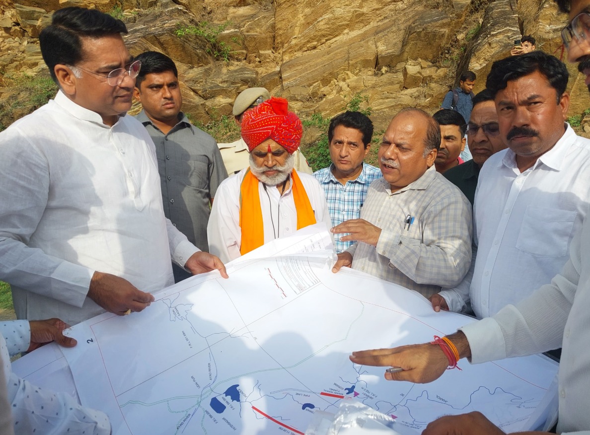 24 News Update उदयपुर | राजस्थान सरकार के जल संसाधन मंत्री श्री सुरेश रावत ने शुक्रवार को उदयपुर में देवास परियोजना के तृतीय और चतुर्थ चरणों के कार्य स्थलों का निरीक्षण किया। उन्होंने अधिकारियों को निर्देश दिए कि प्रस्तावित कार्यों को शीघ्रता से धरातल पर उतारकर परियोजना को गति दी जाए। मंत्री रावत ने नाथियाथल गांव स्थित प्रस्तावित बांध निर्माण स्थल का निरीक्षण किया और परियोजना के तकनीकी विवरणों की जानकारी ली। जल संसाधन विभाग के अधिकारियों ने मंत्री को बताया कि प्रस्तावित बांध का कैचमेंट एरिया 79.06 वर्ग किलोमीटर होगा और इसकी भराव क्षमता 70 एमसीएफटी तय की गई है। साथ ही, 1330 क्यूबिक मीटर प्रति सेकेंड की अतिरिक्त जल निकासी क्षमता भी प्रस्तावित है।