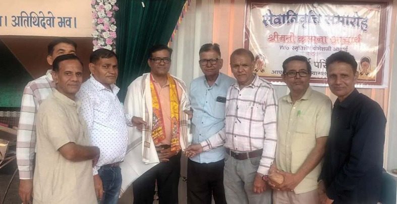 24 News Update सागवाड़ा (जयदीप जोशी) सहस्त्र औदीच्य समाज जिला डूंगरपुर के नवनियुक्त जिला अध्यक्ष हितेश रावल के प्रथम बार सरोदा आगमन पर समाजजनों द्वारा उनका स्वागत एवं अभिनंदन किया गया। इस अवसर पर समाज के पदाधिकारियों एवं वरिष्ठजनों ने माल्यार्पण कर शुभकामनाएं दीं। कार्यक्रम के दौरान वागड़ के बेणेश्वर धाम में समाज भवन निर्माण को लेकर विस्तृत चर्चा की गई। जिला अध्यक्ष डॉ. हितेश रावल ने समाजजनों से अधिक से अधिक सहयोग देने का आह्वान करते हुए कहा कि समाज भवन निर्माण से सामाजिक गतिविधियों को मजबूती मिलेगी और आने वाली पीढ़ियों को एक सशक्त मंच प्राप्त होगा।कार्यक्रम में समाज के कई गणमान्यजन उपस्थित रहे तथा सभी ने एकजुट होकर समाजहित में कार्य करने का संकल्प लिया। इस अवसर पर सरोदा समाज के अध्यक्ष जगदीश मेहता, पूर्व अध्यक्ष विद्याशंकर पाठक, अनिल व्यास, अरविंद रावल, निर्मल पाठक, हेमेंद्र आचार्य एवं नरेंद्र पाठक उपस्थित रहे। Share this: Share on X (Opens in new window) X Share on Facebook (Opens in new window) Facebook More Email a link to a friend (Opens in new window) Email Share on WhatsApp (Opens in new window) WhatsApp Like this:Like Loading... Related Discover more from 24 News Update Subscribe to get the latest posts sent to your email. Type your email… Subscribe Post navigation महाराणा प्रताप के राज्यारोहण दिवस पर लॉर्ड कृष्णा विद्यालय में भव्य आयोजन