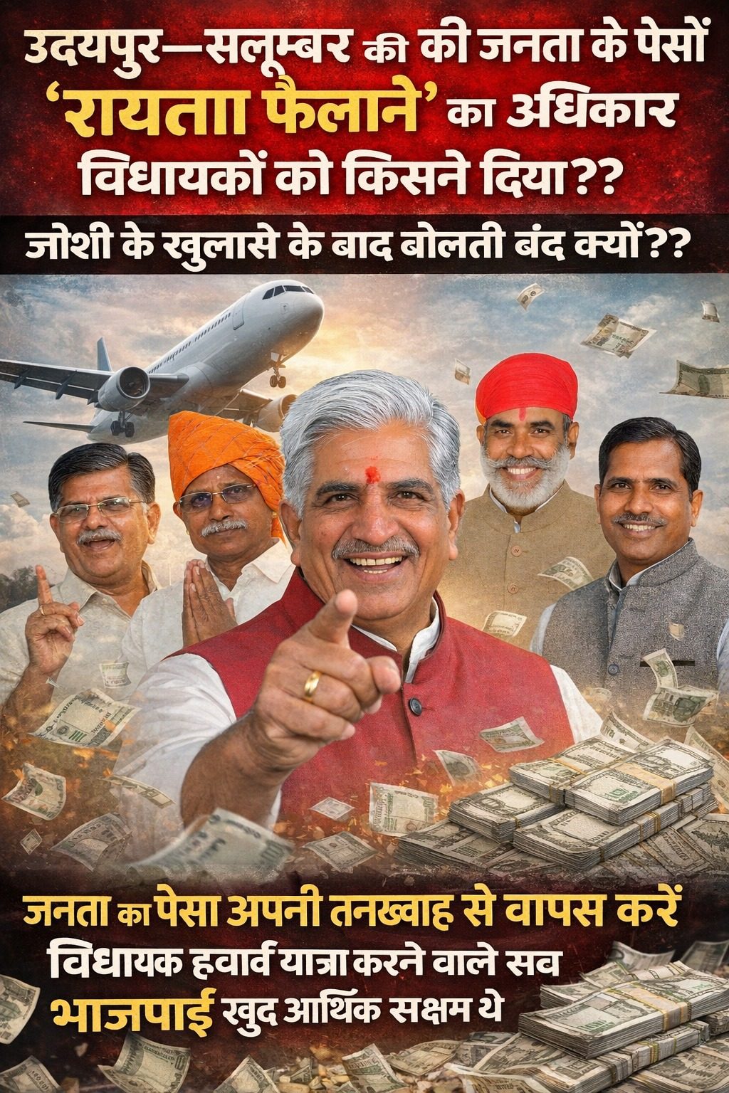 24 News Update उदयपुर। उदयपुर भाजपा में इन दिनों पॉलिटिकल लैंड माइंस के फटने का सिलसिला चल रहा है। बरसों से नेताओं के मन में उबल रहे ज्वालामुखी फूट रहे हैं। प्री उदयपुर फाइल्स और पोस्ट उदयपुर फाइल्स कालखंड में पंजाब के राज्यपाल गुलाबचंद कटारिया पर पहले चिट्ठी बम, उसके बाद बयानों के लंबी दूरी तक मार करने वाले राजनीतिक बयानों और मिसाइलों के ड्रोन। उसके जवाब में हाल ही में उदयपुर आए कटारिया के जवाबी नश्तर माहौल में राजनीतिक युद्ध जैसे हालातों का अहसास करवा रहे हैं। इन सबके बीच बरसों के गड़े मुर्दे उखाड़े जा रहे हैं तो सनसीखेज तथ्यों की ऐसी फेहरिस्त सामने आ रही है कि जिसे देख कर जनता हैरान हैं कि पार्टी विद डिफरेंस के सूरमा आखिर उनकी आंखों में धूल झोंकते हुए किस—किस तरह से कारनामों को अंजाम दे रहे हैं। हवाई यात्रा करने वाले सब भाजपाई खुद आर्थिक सक्षम थे कल भाजपा के कद्दावर नेता धर्मनारायण जोशी ने गुलाबजी को जो 3700 से अधिक शब्दों की चिट्ठी लिखी वो अपने आप में राजनीतिक जवाब का एक क्लासिक शोध पत्र बनकर सामने आ गई। इसमें जो सवाल उठाए गए हैं आज वो प्रदेशभर में चर्चा का विषय बने हुए हैं। इस पत्र में चर्चा उस खर्चे की भी जिस पर आज की हमारी यह खबर आधारित है। यह खर्चा आखिर क्यों किया गया यह सवाल अब उन विधायकों का पीछा कर रहा है जिन्होंने आंख मींचकर जनता का पैसा हवाई यात्रा पर हवा में उड़ा दिया। जो लोग हवाई यात्रा पर गए उसमें भाजपा के कई कद्दावर नेता भी शामिल हैं। कई तो जन प्रतिनिधि भी हैं। ऐसे आर्थिक रूप से सक्षम लोगों को जनता के टेक्स के पईसों का धुआं करके हवाई यात्रा पर लेकर जाना आखिर कहां की समझदारी थी?? इस सवाल का जवाब कौन देगा, इसका हिसाब आखिर कौन देगा?? क्या खर्च हुआ पैसा विधायकों के वेतन से ही नहीं वसूला जाना चाहिए। आदि—आदि सवाल अब बहुत विस्तार ले चुके हैं।जोशी जी ने अपने पत्र में समर्थकों की मुफ्त गौहाटी हवाई यात्रा और वो भी विधायकों के यात्रा मद से करवाने का जिक्र करके सबको चौंका दिया हैं। विधायकों का हवाई खर्चे का यह सुपरपावर और उसके दुरूपयोग का सुपर पावरफुल दुस्साहस शायद सामने हीं नहीं आता अगर जोशी जी जवाबी मिसाइल में यह मिसाल नहीं देते। जनजाति वर्ग के विधायकों के यात्रा मद का बेरहमी से उपयोग जोशी ने अपने पत्र में लिखा है कि फरवरी 2023 में गुलाबजी ने असम के राज्यपाल पद की शपथ ली। शपथ ग्रहण में आपके परिजनों, शुभचिन्तकों, समर्थकों की गौहाटी यात्रा का व्यय राजस्थान विधानसभा के चार विधायकों के व्यक्तिगत विधायक यात्रा मद से किया गया। ये चारों विधायक उदयपुर जिले के है और जनजाति वर्ग से आते हैं। ये चारों अपना अगला विधानसभा टिकट न कट जाये, इस कारण आपकी मिजाजपूर्सी में हवाई यात्रा का व्यय अपने विधा