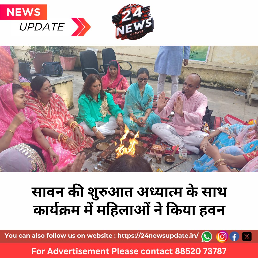 24 News Update उदयपुर। राहडा फाउंडेशन, अखिल भारतीय मारवाड़ी सम्मेलन व समिधा संस्थान के संयुक्त तत्वावधान में नारी सशक्तिकरण, संस्कृति, पर्यावरण और सेवा के उद्देश्य को लेकर सावन की शुरुआत अध्यात्म के साथ कार्यक्रम में सामूहिक हवन कार्यक्रम आयोजित किया गया।