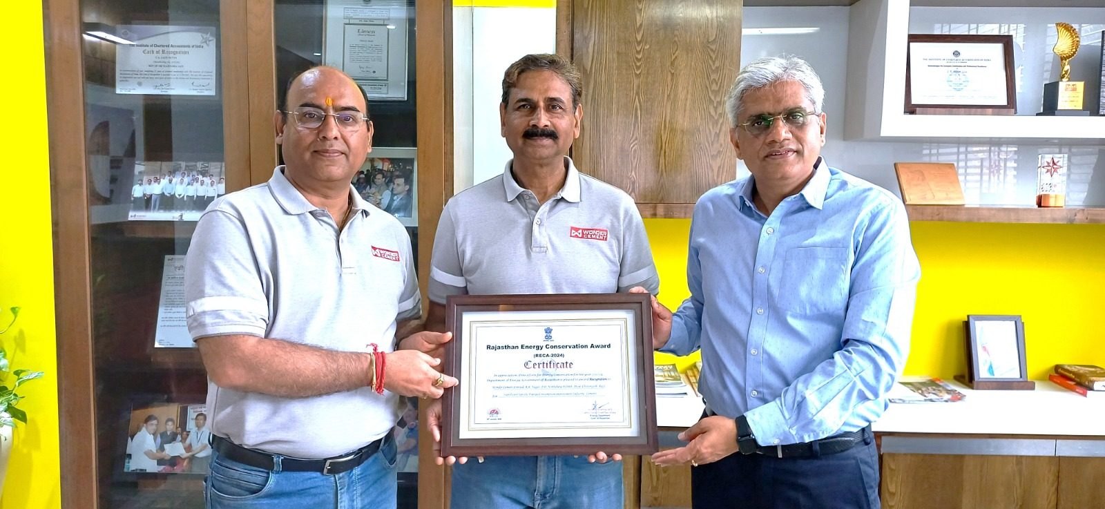 24 News Update निंबाहेड़ा (कविता पारख). वंडर सीमेंट लि., आर. के. नगर, निम्बाहेड़ा को राजस्थान सरकार के ऊर्जा विभाग द्वारा सीमेंट उद्योग श्रेणी में प्रतिष्ठित राजस्थान ऊर्जा संरक्षण पुरस्कार (RECA 2024) से सम्मानित किया गया।इस अवसर पर कम्पनी के यूनिट हेड नितिन जैन ने वंडर सीमेंट के सहायक उपाध्यक्ष मदन मोहन माहेश्वरी एवं पीयूष जोशी सहित कम्पनी के सभी कर्मचारियों को शुभकामनाएं देते हुए बताया की ऊर्जा संरक्षण के क्षेत्र में किये गये उल्लेखनीय कार्यों हेतु जयपुर में आयोजित समारोह के दौरान राजस्थान सरकार के ऊर्जा मंत्री हीरालाल नागर और ऊर्जा विभाग के अतिरिक्त मुख्य सचिव अजिताभ शर्मा (आईएएस) द्वारा यह पुरस्कार वंडर सीमेंट को प्रदान किया गया।युनिट हेड जैन ने यह अवाॅर्ड वंडर सीमेंट के सभी कर्मचारियों को समर्पित करते हुए कहा कि यह सम्मान कम्पनी द्वारा आधुनिकीकरण एवं नवाचारों के माध्यम से ऊर्जा संरक्षण के प्रति किये गये उल्लेखनीय कार्यों का परिणाम है। इन प्रयासों से बिजली की खपत में कमी आई है, जो ऊर्जा संरक्षण, स्थिरता और संचालन उत्कृष्टता के प्रति वंडर सीमेंट की निरंतर प्रतिबद्धता को दर्शाता है।यह प्रगति ऊर्जा संरक्षण के क्षेत्र में कुशल प्रौद्योगिकियों को शामिल करने, आवश्यक संयंत्र उपकरणों को बेहतर करने, नई नियंत्रण प्रणालियों को स्थापित करने और ऊर्जा उपयोग की निरंतर देख-रेख से संभव हो पायी है। इन सभी प्रयासों से ऊर्जा की खपत कम हुई है और कंपनी का पर्यावरणीय प्रभाव भी न्यूनतम हुआ है। Share this: Share on X (Opens in new window) X Share on Facebook (Opens in new window) Facebook More Email a link to a friend (Opens in new window) Email Share on WhatsApp (Opens in new window) WhatsApp Like this:Like Loading... Related Discover more from 24 News Update Subscribe to get the latest posts sent to your email. Type your email… Subscribe Post navigation बसंत पंचमी प्राचीन भारतीय परंपरा का पावन उत्सव : आंजना भगवान श्री नामदेव जी महाराज के बोधिसत्व दिवस बसंत पंचमी पर भव्य शोभा यात्रा का आयोजन, भाजपा की ओर से पुष्प वर्षा के साथ किया स्वागत