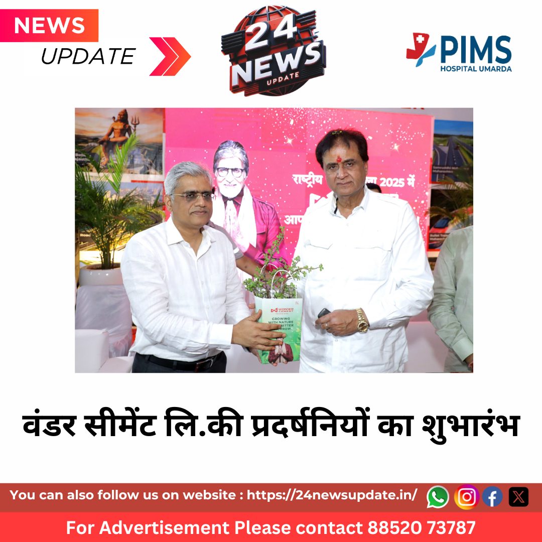 24 News Update निम्बाहेडा कविता पारख। राष्ट्रीय दषहरा मेला निम्बाहेड़ा में वंडर सीमेंट लि. की व्यावसायिक एवं हुनर प्रदर्शनी का उद्घाटनपूर्व मंत्री राजस्थान सरकार एवं विधायक निम्बाहेड़ा श्रीचंद कृपलानी, वंडर सीमेंट के यूनिट हेड नितिन जैन, पुर्व विधायक अशोक नवलखा, उपखंड अधिकारी विकास पंचोली, अधिशाषी अधिकारी कौशल खटूम्बरा, नगर अध्यक्ष कपिल चौधरी, इत्यादि द्वारा किया गया। इस अवसर पर जैन ने अतिथियों को बताया की प्रति वर्ष लगने वाली वंडर सीमेंट की व्यावसायिक प्रदर्शनी के माध्यम से मेलार्थियों को सीमेंट की बेहतर तकनीकि एवं गुणवत्ता संबंधित जानकारियां देते हुए विभिन्न गतिविधियां भी आयोजित की जायेंगी।