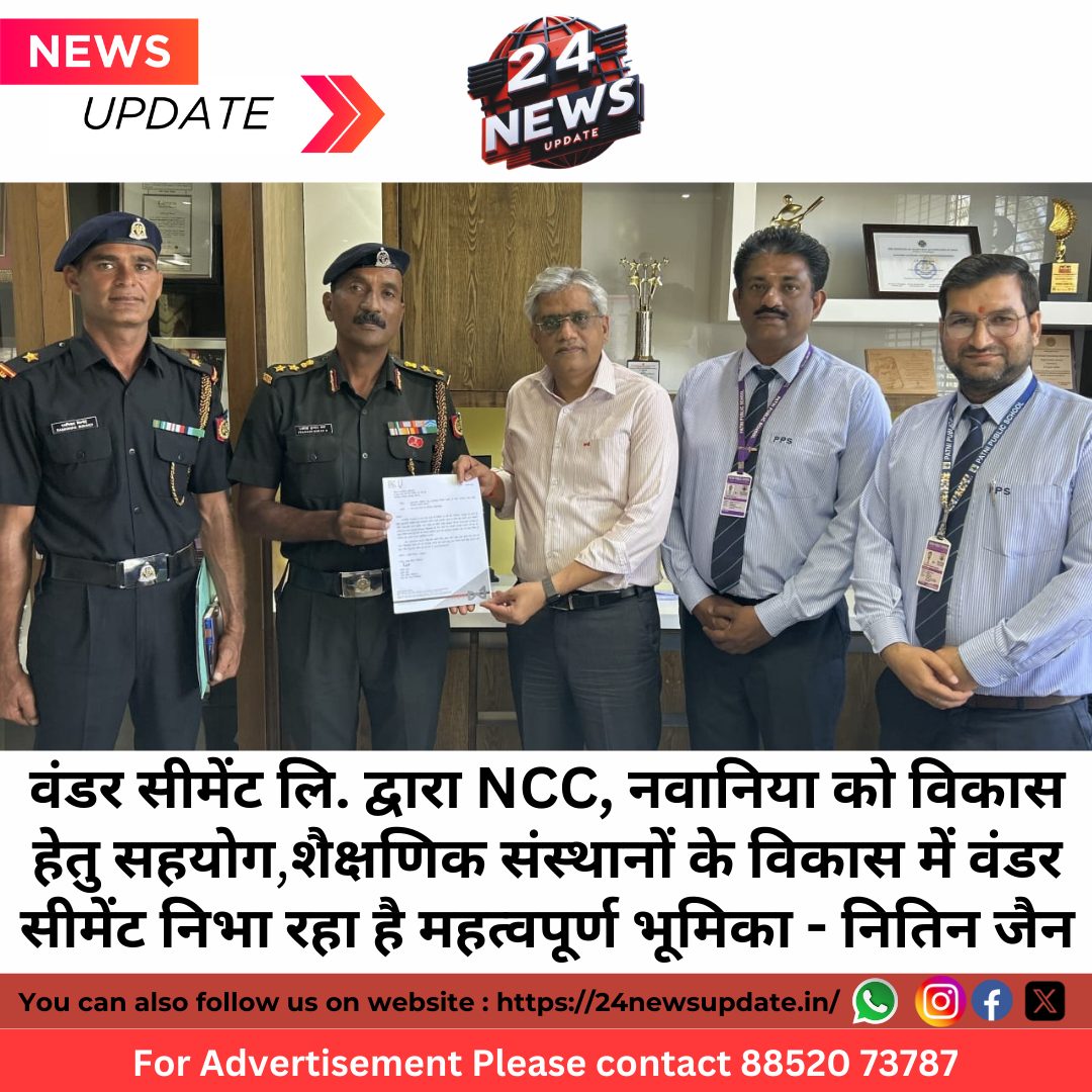 24 न्यूज़ अपडेट निंबाहेड़ा. वंडर सीमेंट लिमिटेड़, निम्बाहेड़ा द्वारा नींव इनिशिएटिव के तहत आज 6 मार्च को यूनिट हेड नितिन जैन ने NCC, नवानिया के कमांडिग ऑफिसर, कर्नल प्रकाश कुमार एन को प्रशिक्षण सुविधाओं को बेहतर करने हेतु राशि दस लाख रु का सहयोग* प्रदान किया।इस अवसर पर *नितिन जैन ने बताया कि वंडर सीमेंट लि. द्वारा समय-समय पर विभिन्न शैक्षणिक संस्थानों को सहयोग किया जाता रहा है , इसी क्रम में आज NCC 2 Raj R&V Regt, नवानिया, को घुड़सवारों के प्रशिक्षण मैदान में निर्माणाधीन सुविधाओं के लिए सहयोग प्रदान किया गया है। इस सहयोग से पुरे क्षेत्र के तीन हज़ार से अधिक NCC कैडेट्स को लाभ* मिलेगा। इस सहयोग के लिये कर्नल प्रकाश ने वंडर सीमेंट का आभार व्यक्त किया और बताया की घुड़सवारों के प्रशिक्षण हेतु किये गये सहयोग से कैडेट्स बेहतर घुड़सवारी – बेहतर तकनीक के साथ कर सकेंगे एवं उनके लिए विभिन्न क्षेत्रों जैसे हंटर-जंपर्स, हॉर्स ड्राइविंग इवेंट, वॉल्टिंग, पोलो, बैरल रेसिंग व राष्ट्रीय, अंतर्राष्ट्रीय स्तर के खेलों की तैयारी की शुरुआत हो सकेगी। इस अवसर पर पाटनी पब्लिक स्कूल के प्रधानाचार्य गिरीश बाबू एम एम सहित सम्बंधित विभागो के अधिकारी उपस्थित थे। Share this: Share on X (Opens in new window) X Share on Facebook (Opens in new window) Facebook More Email a link to a friend (Opens in new window) Email Share on WhatsApp (Opens in new window) WhatsApp Like this:Like Loading... Related Discover more from 24 News Update Subscribe to get the latest posts sent to your email. Type your email… Subscribe Post navigation ध्यानाकर्षण प्रस्ताव के माध्यम से विधायक कृपलानी ने चारागाह भूमि पर वर्षों के कब्जों को नियमित करने की रखी मांग विधायक कृपलानी के आग्रह पर पोश मशीनों में खराबी के कारण फरवरी माह में वंचित लाभार्थियों को खाद्यान्न वितरण की तिथि बढ़ाई