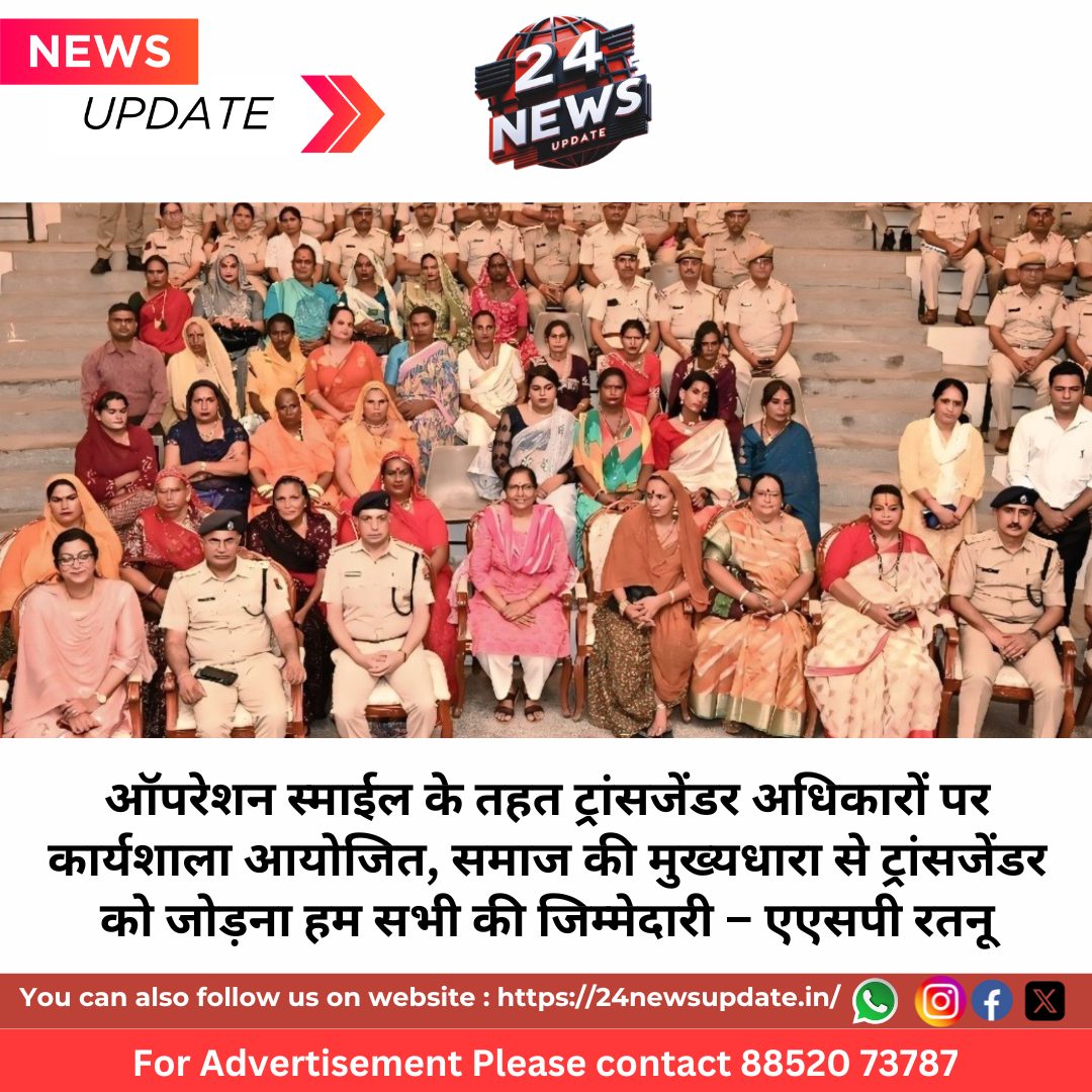 24 News Update उदयपुर, 3 जुलाई। राजस्थान पुलिस द्वारा चलाए जा रहे “ऑपरेशन स्माईल” अभियान के अंतर्गत ट्रांसजेंडर समुदाय के अधिकारों के संरक्षण और उन्हें समाज की मुख्यधारा से जोड़ने को लेकर एक महत्वपूर्ण रेंज स्तरीय कार्यशाला का आयोजन गुरुवार को विद्या भवन ऑडिटोरियम, फतहपुरा, उदयपुर में किया गया। यह कार्यक्रम उदयपुर रेंज पुलिस एवं यूनिसेफ राजस्थान के संयुक्त तत्वावधान में आयोजित हुआ।पुलिस अधिकारियों को किया गया संवेदनशीलकार्यशाला में ट्रांसजेंडर समुदाय की समस्याओं के समाधान हेतु थाना स्तर पर नियुक्त नोडल पुलिस अधिकारियों को संवेदनशील बनाने, उन्हें ट्रांसजेंडर (अधिकारों का संरक्षण) अधिनियम, 2019 की जानकारी देने और समुदाय के प्रतिनिधियों के साथ संवाद स्थापित करने पर जोर दिया गया। कार्यक्रम की अध्यक्षता कर रहे अतिरिक्त पुलिस अधीक्षक हर्ष रतनू ने कहा, “ट्रांसजेंडर समुदाय को सम्मान और समानता देना हम सबका दायित्व है। उन्हें समाज की मुख्यधारा में लाने के लिए पुलिस महकमा गंभीरता से कार्य कर रहा है।” उन्होंने नोडल अधिकारियों को अधिनियम के गहन अध्ययन व अनुपालन के निर्देश भी दिए।मुख्य प्रशिक्षक का मार्गदर्शननई भौर संस्था की निदेशक पुष्पा माई ने मुख्य प्रशिक्षक के रूप में पुलिस अधिकारियों को ट्रांसजेंडर कानूनों, व्यवहार संहिता एवं राज्य सरकार द्वारा इस वर्ग के लिए संचालित योजनाओं की विस्तृत जानकारी दी। उन्होंने कहा, “ट्रांसजेंडर समुदाय को विशेष सुविधाएं और सम्मान मिले, इसके लिए निरंतर प्रयास हो रहे हैं।”मानसिक स्वास्थ्य पर भी जोरगीतांजली मेडिकल कॉलेज के मनोचिकित्सक डॉ. जीतेन्द्र जीनगर ने मानसिक स्वास्थ्य को मूलभूत अधिकार बताते हुए अवसाद, तनाव और मानसिक समस्याओं से निपटने के उपाय बताए। उन्होंने हेल्पलाइन 14416 का उपयोग करने का सुझाव भी दिया। यूनिसेफ की संभागीय सलाहकार श्रीमती सिन्धु बिनुजीत ने कार्यशाला के उद्देश्यों पर प्रकाश डालते हुए पुलिस अधिकारियों से आग्रह किया कि थाने में आने वाले किसी भी लिंग/समुदाय के व्यक्ति के साथ संवेदनशील और सम्मानजनक व्यवहार किया जाए। उन्होंने बताया कि ट्रांसजेंडर समुदाय और पुलिस के बीच विश्वास और समन्वय स्थापित करने के लिए इस तरह की कार्यशालाएं नियमित रूप से आयोजित की जाती हैं।कानूनी जानकारी और योजनाएं साझा की गईंसमाज कल्याण विभाग के परामर्शदाता अमित भट्ट ने ट्रांसजेंडर के लिए ऑनलाइन रजिस्ट्रेशन प्रक्रिया, पेंशन योजना, छात्रवृत्ति, स्माईल योजना, गरिमा गृह, मनोवैज्ञानिक सहायता, और कल्याण बोर्ड से संबंधित सुविधाओं की जानकारी दी। कार्यशाला के दौरान ट्रांसजेंडर समुदाय के प्रतिनिधियों ने अपने अनुभव और समस्याएं खुलकर साझा क