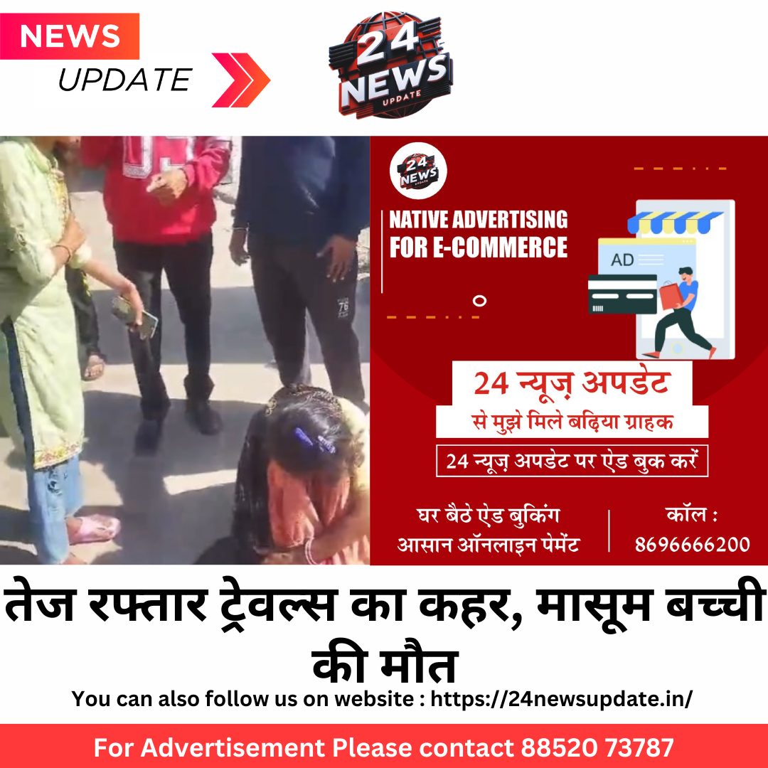 24 न्यूज अपडेट. उदयपुर। उदयपुर के गोवर्धन विलास थाना क्षेत्र स्थित नेक्सा शोरूम के पास रविवार दोपहर एक दर्दनाक सड़क हादसा हो गया। तेज रफ्तार ऋषभ ट्रेवल्स की एक बस ने एक मासूम बच्ची सहित कई लोगों को अपनी चपेट में ले लिया। बच्ची की मौके पर ही दर्दनाक मौत हो गई। घटना के तुरंत बाद मौके पर मौजूद लोगों ने एम्बुलेंस को सूचना दी। बच्ची और घायलों को तत्काल एमबी हॉस्पिटल पहुंचाया गया।