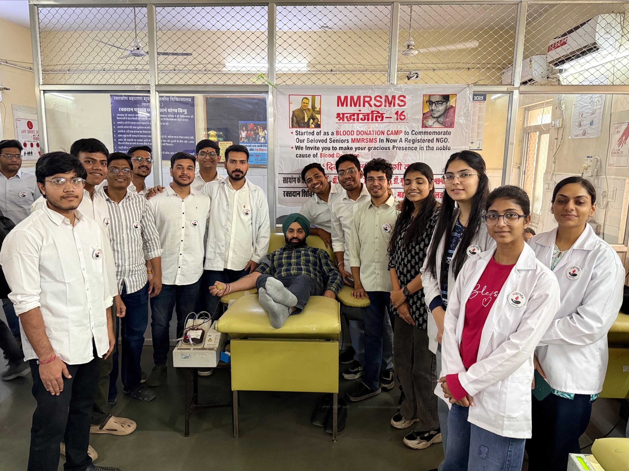 24 News Update उदयपुर। डॉ. मोज मालव एवं डॉ. राम शर्मा मेमोरियल सोसाइटी (MMRSMS) द्वारा 3 दिसंबर, 2025 को महाराणा भूपाल अस्पताल के ब्लड बैंक में आयोजित श्रद्धांजलि कैम्प XVI में युवा डॉक्टरों ने बढ़-चढ़कर भाग लिया और कुल 129 यूनिट रक्तदान कर जरूरतमंदों के लिए जीवनदान सुनिश्चित किया।इस ब्लड डोनेशन कैम्प में डॉक्टरों ने न केवल रक्तदान किया, बल्कि सामाजिक उत्तरदायित्व का उत्कृष्ट उदाहरण प्रस्तुत किया। सोसाइटी ने इस अवसर पर उपस्थित नागरिकों और डॉक्टरों से अपील की कि वे रक्तदान जैसी मानवता सेवा गतिविधियों में बढ़-चढ़कर भाग लें। आयोजन समिति और रक्तदाता डॉक्टर:डॉ. प्रशांत शर्मा, डॉ. जयंत नगर, डॉ. दुष्यंत तिवारी, डॉ. सचिन देव राठौड़, डॉ. आकाश चौहान, डॉ. क्षितिज शर्मा, इस कार्यक्रम में सभी डॉक्टरों ने पूरे उत्साह और जोश के साथ भाग लेकर यह संदेश दिया कि मानवता की सेवा हर व्यक्ति की जिम्मेदारी है। ब्लड डोनेशन कैम्प ने यह स्पष्ट कर दिया कि युवा डॉक्टरों और समाजसेवी नागरिकों के प्रयास से जरूरतमंदों के जीवन में वास्तविक परिवर्तन लाया जा सकता है। Share this: Share on X (Opens in new window) X Share on Facebook (Opens in new window) Facebook More Email a link to a friend (Opens in new window) Email Share on WhatsApp (Opens in new window) WhatsApp Like this:Like Loading... Related Discover more from 24 News Update Subscribe to get the latest posts sent to your email. Type your email… Subscribe Post navigation माली कॉलोनी से सबसिटी सेंटर तक बोटलनेक हटाया, नेहरू हॉस्टल के पास संपर्क सड़क का काम शुरू आबकारी विभाग की समीक्षा बैठक में आयुक्त ने दिए लक्ष्यों की पूर्णता के निर्देश