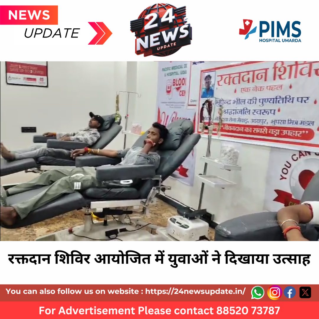 24 News Update उदयपुर। भील युवा सेना मेवाड़ एवं भूपसा मित्र मंडल की ओर से स्वर्गीय भूपेन्द्र भील की पुण्यतिथि पर “एक नेक पहल” शीर्षक से रक्तदान शिविर का आयोजन किया गया। शिविर में बड़ी संख्या में युवाओं ने भाग लेते हुए मानव सेवा और समाजसेवा के प्रति अपनी प्रतिबद्धता जताई। कार्यक्रम में उपस्थित समाजसेवियों ने रक्तदाताओं का उत्साहवर्धन करते हुए कहा कि रक्तदान जीवनदान का सबसे बड़ा उपहार है। उन्होंने युवाओं से इस अभियान को जनआंदोलन बनाने की अपील की। कई युवाओं ने पहली बार रक्तदान कर भूपेन्द्र भील के आदर्शों से प्रेरित होकर समाजहित का संकल्प लिया।